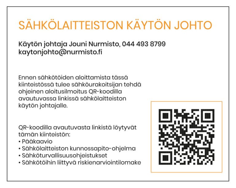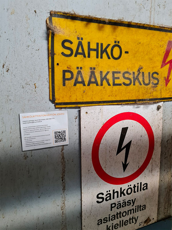 Sähkökeskukseen tai sähkötilaan liimataan tarra, jossa on QR-koodi. Koodi luetaan puhelimella, tabletilla tai tietokoneella, jolloin pääset asiakassivulle, jossa on kaikki tarvittavat ohjeistukset.